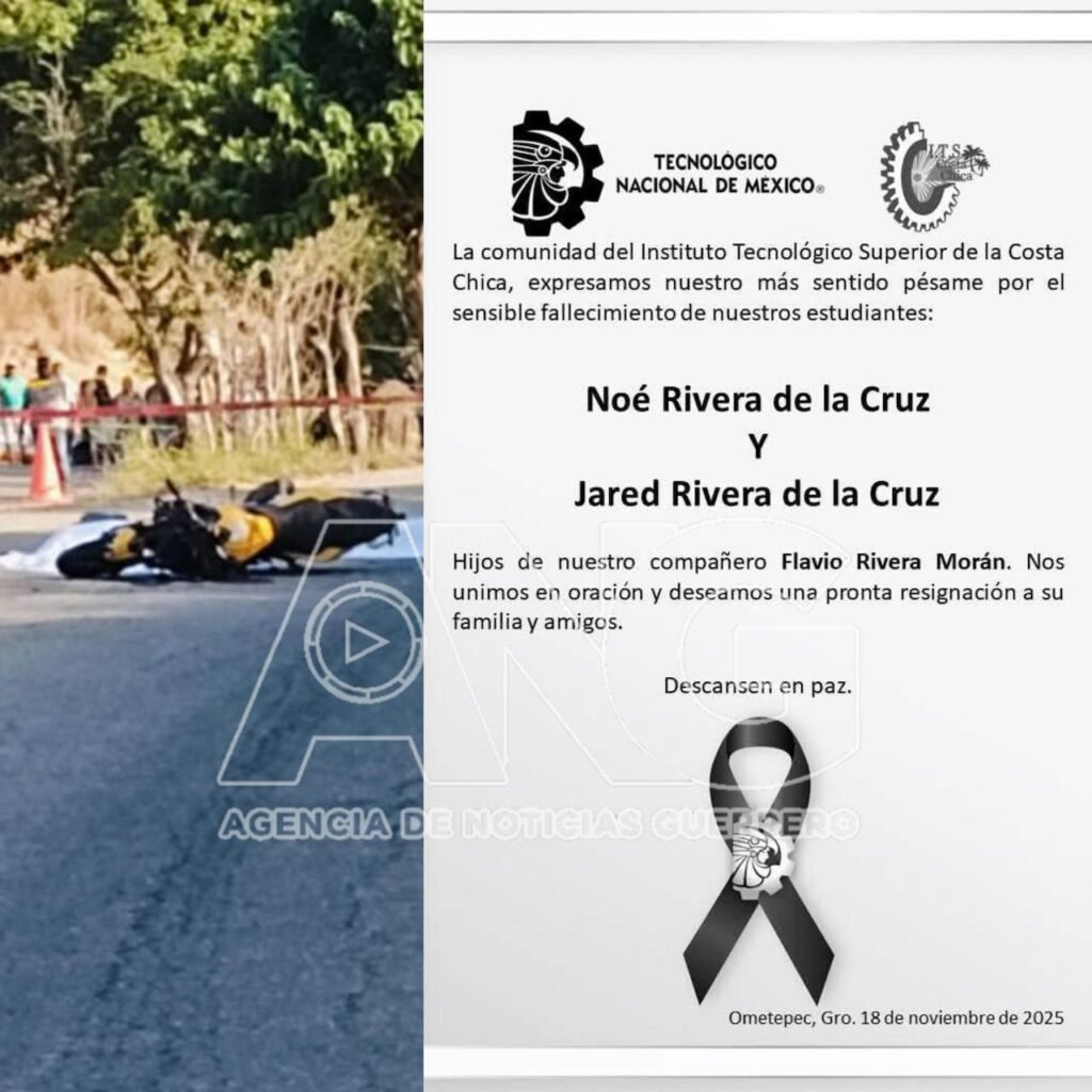 Ometepec, Gro. Agencia de Noticias Guerrero (ANG). —Dos jóvenes, hermanos y originarios de la comunidad de San José Ejido, fallecieron en un trágico accidente de motocicleta ocurrido en la curva ubicada en la entrada del libramiento, cerca de la zona donde se encuentra la antena.