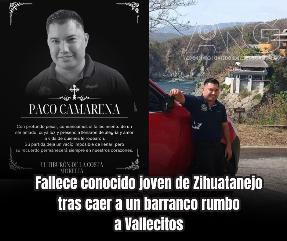 Por Alberto Solís Loeza. Zihuatanejo, Gro; 18 de marzo de 2026. Agencia de Noticias Guerrero (ANG). – El conocido joven identificado como Francisco Audel Camarena Valencia, murió tras caer junto con su vehículo a un barranco de la carretera interestatal Zihuatanejo-Coyuca de Catalán, antes de la comunidad de Vallecitos de Zaragoza, en la sierra de Zihuatanejo.