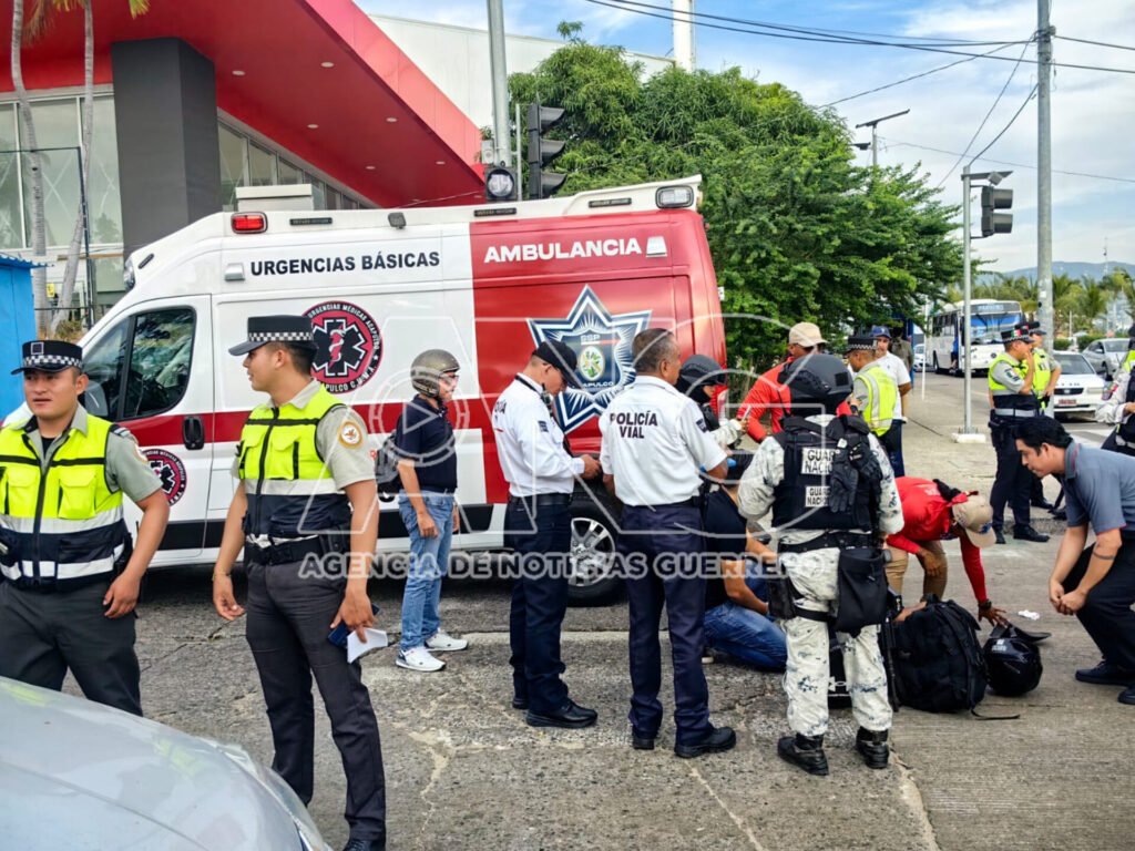 El motociclista, trabajador de la cadena de restaurantes Vips, resultó lesionado y fue atendido en el lugar por paramédicos de la Central de Urgencias Médicas de Acapulco (CUMA), quienes posteriormente lo trasladaron a un hospital para su valoración médica.