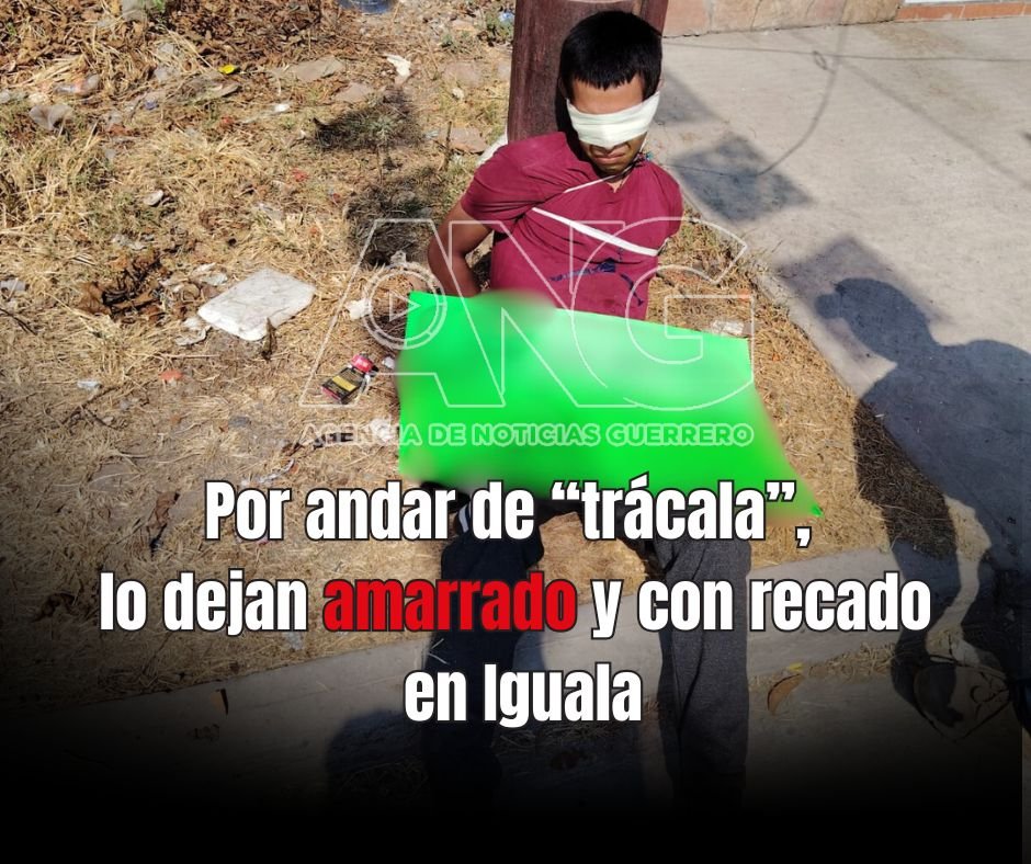 Iguala, Gro. Agencia de Noticias Guerrero (ANG). — La tarde de este lunes, alrededor de las 3:00 de la tarde, un hombre fue localizado amarrado y con un mensaje en la comunidad de Tomatal, en el municipio de Iguala, presuntamente como escarmiento por andar de “trácala”.