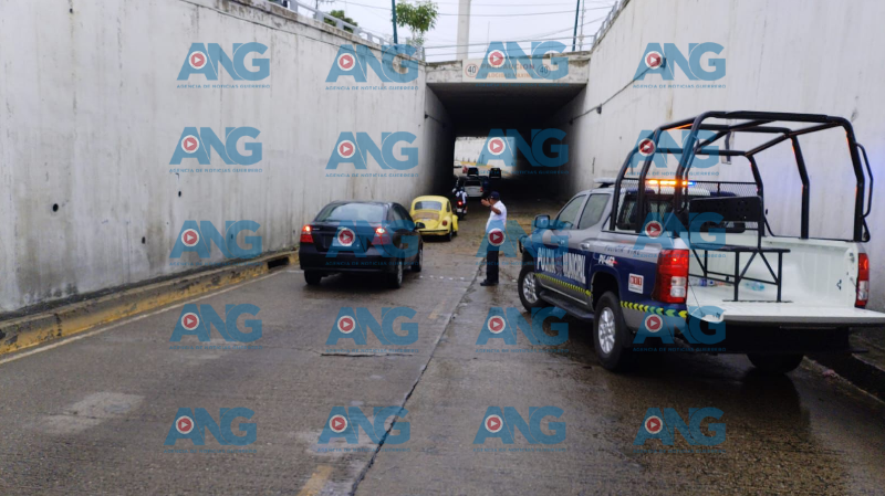 Acapulco, Gro., A 13 de agosto del 2025.- Agencia de Noticias Guerrero (ANG).-Un vehículo fue arrastrado por las corrientes generadas por las lluvias de las últimas horas en la zona conurbada de Acapulco.